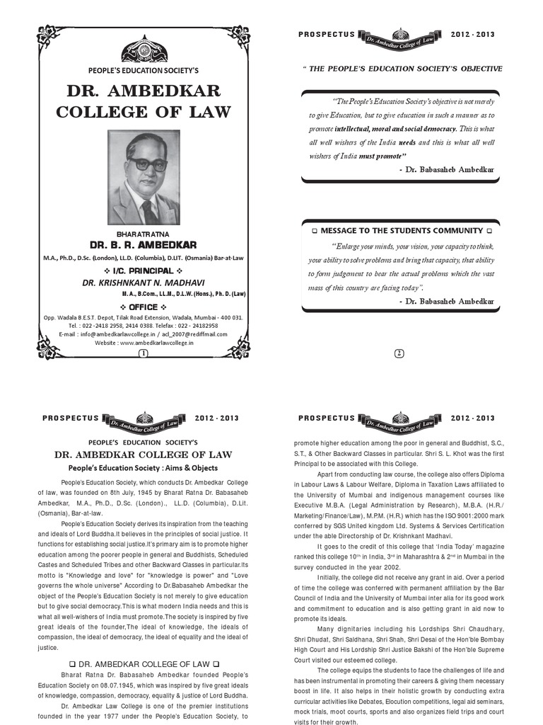 Degree Prospectus 2012 13 University And College Admission Libraries - Ambedkar college of law (acl), mumbai admission 2021 details for llb,pgd,diploma.